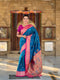 French Blue Wedding Wear Soft Paithani Silk Saree